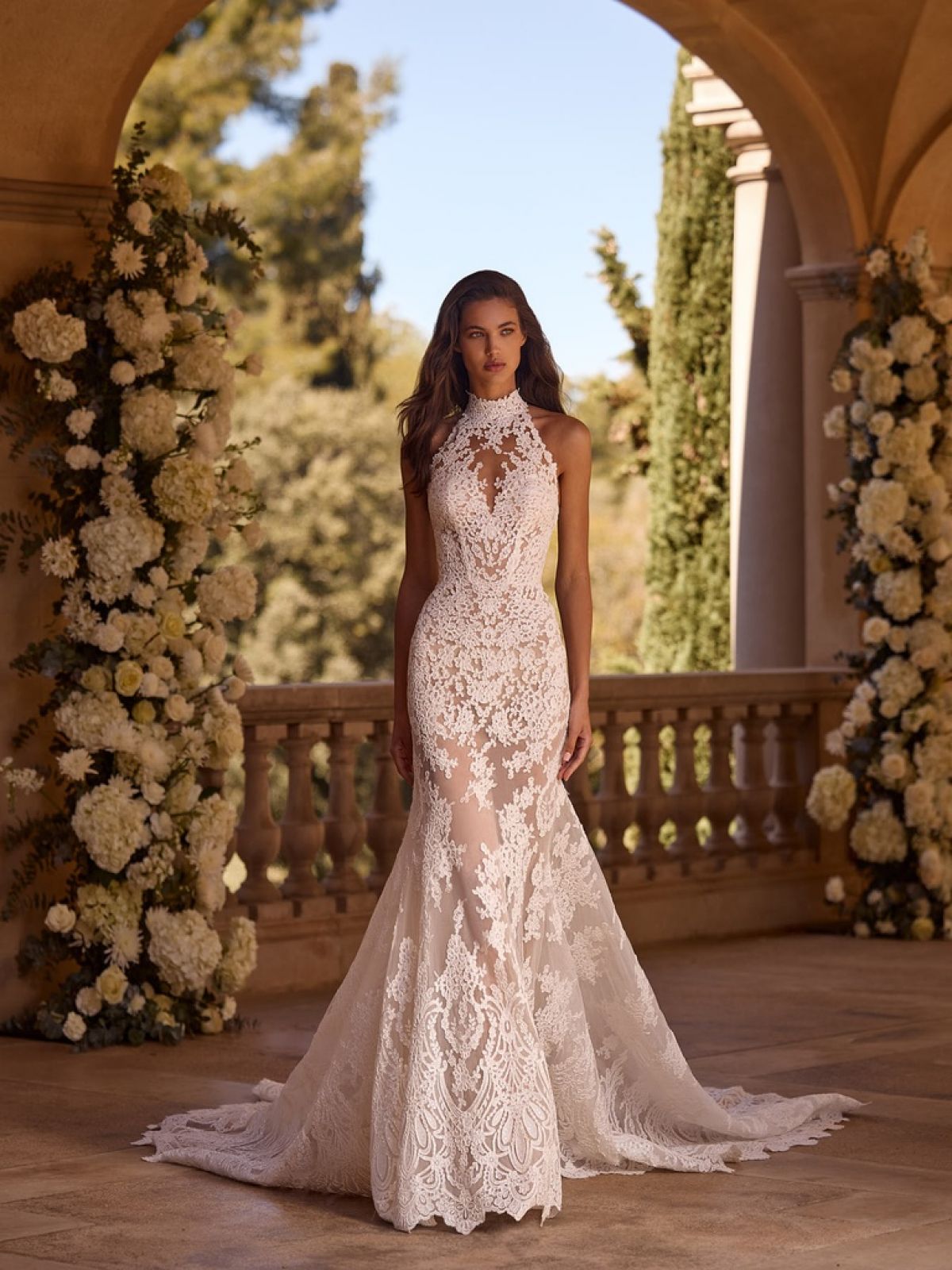 La robe de mariée CERES du créateur Alberto Palatchi incarne l’essence même de la féminité moderne : une silhouette sirène sculptante, un travail de dentelle haute couture et une allure à la fois majestueuse et sensuelle.