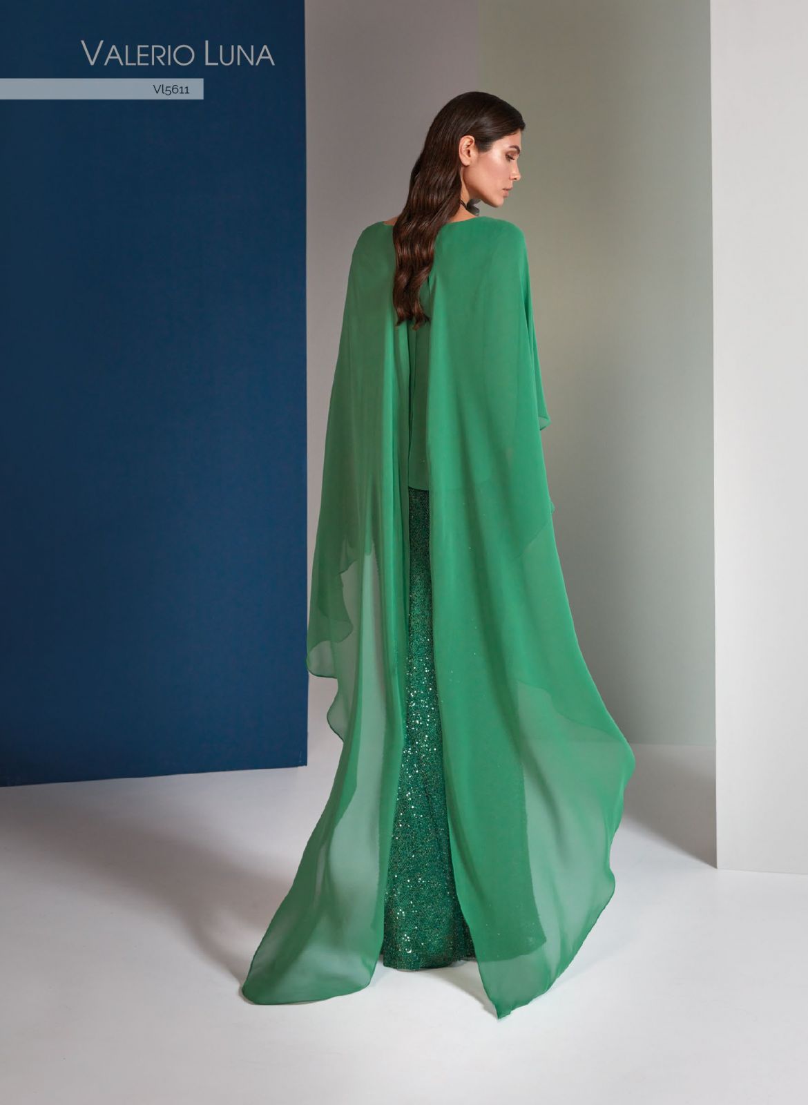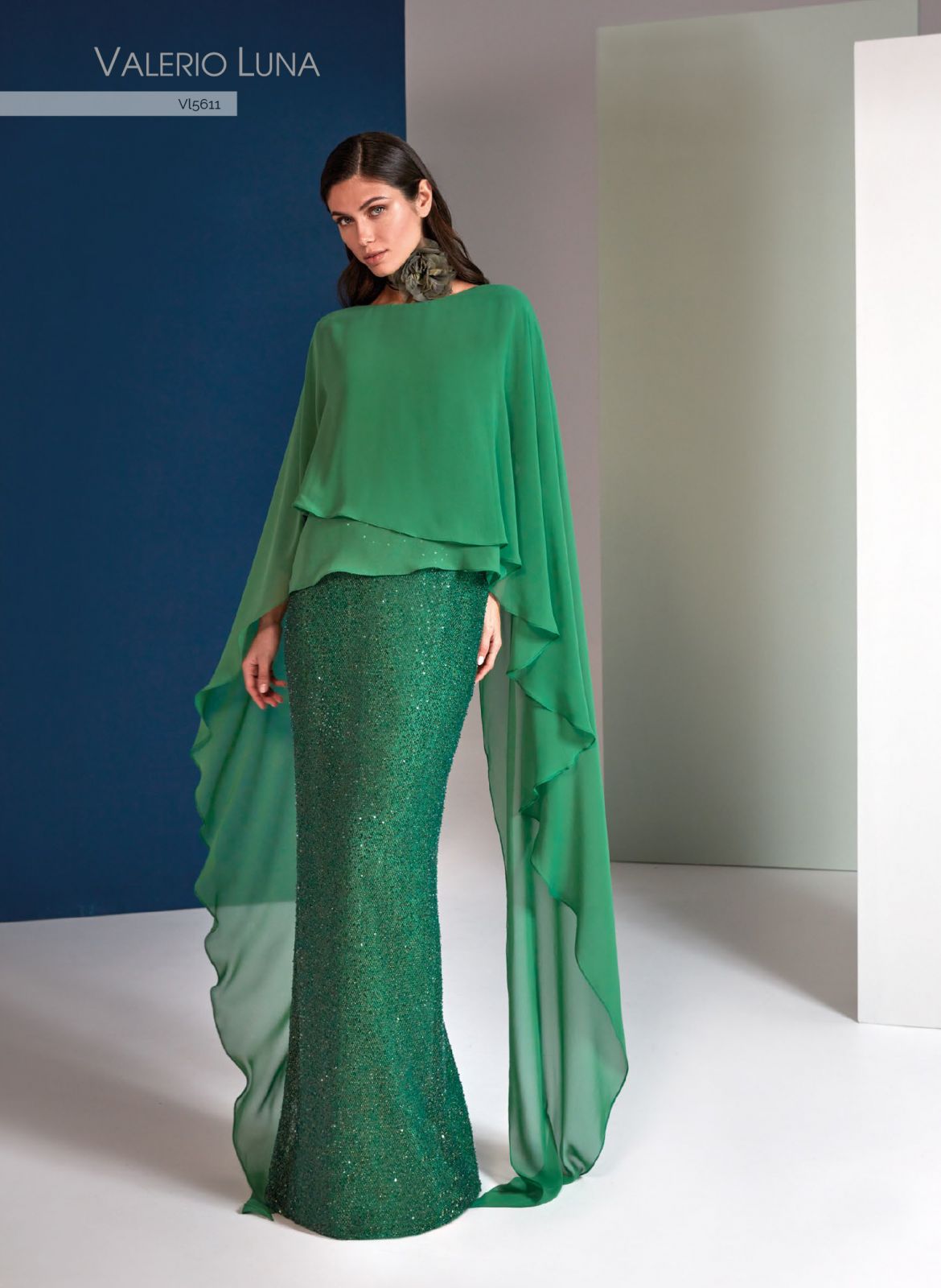 Robe cocktail de couleur vert émeraude, de forme fourreau.