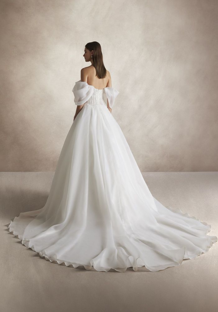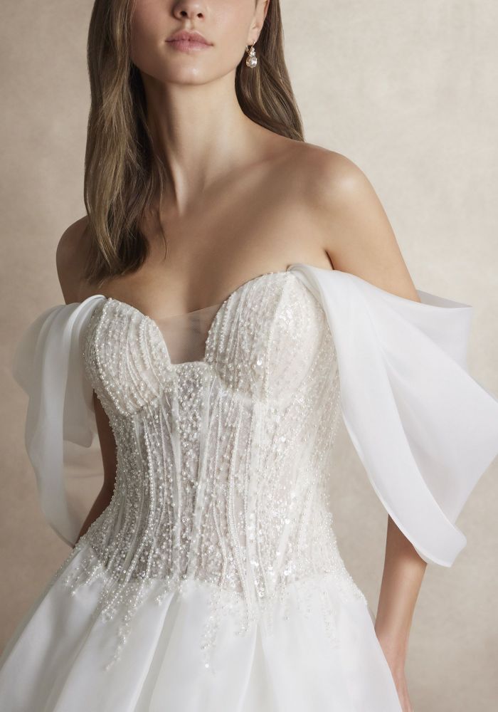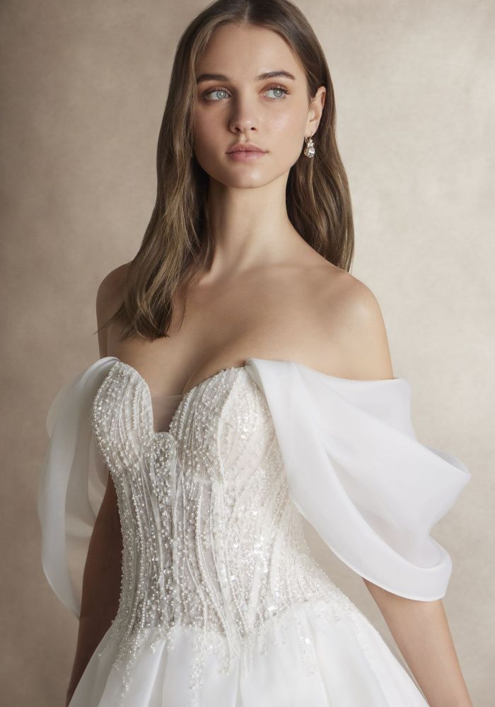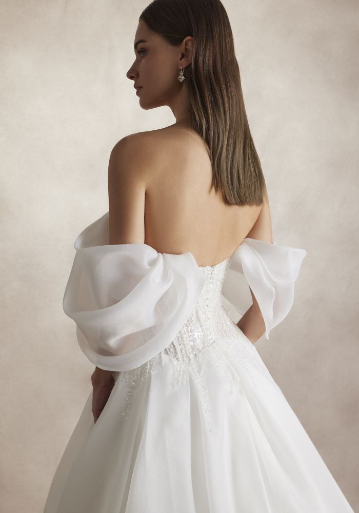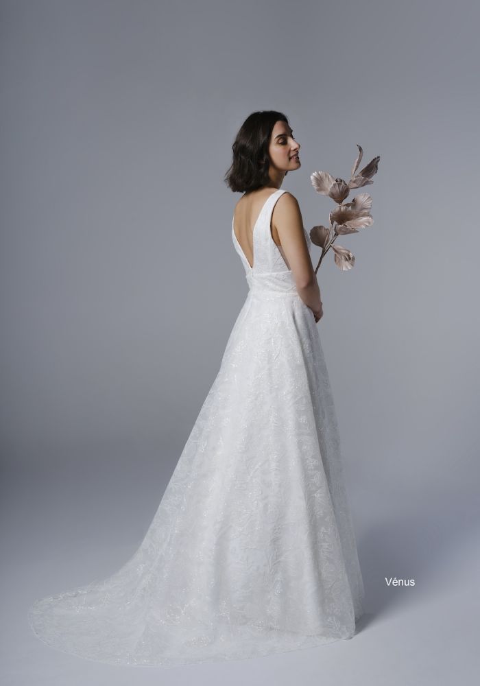 Le style A-Line forme comme son nom l’indique un A. Il souligne une taille fine et dissimule les hanches. Vous pourrez choisir l’intensité du volume de la jupe en fonction du jupon.